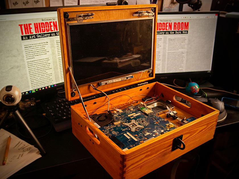 Alojado en su propio servidor en la Dark Web, The Hidden Room (La sala oculta) es un espacio abierto y libre para la exhibición de proyectos artísticos - a la vez que un sitio protegido-, en un mundo cada vez más controlado, arbitrariamente etiquetado y paulatinamente limitado por legislaciones sobre copyright que están transformando todo el acervo público en inaccesible propiedad privada.